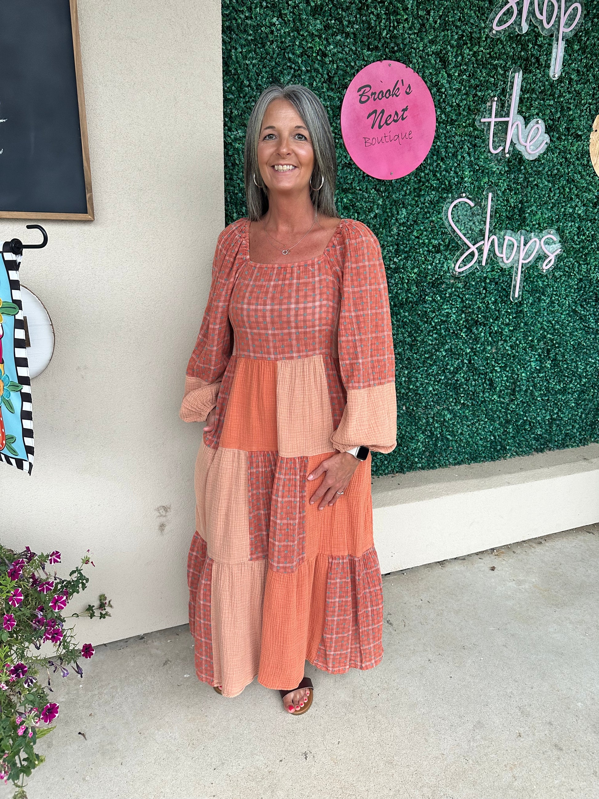 Wrap yourself in fall vibes with our Pumpkin Latte Dress. This long sleeve patchwork dress is perfect for cooler days, keeping you stylish and comfortable. Whether you're running errands or meeting friends for coffee, this dress will keep you looking chic and feeling cozy.
